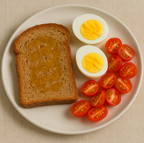 | 화요일 | 아침 | 통밀빵 + 삶은 계란 + 방울토마토 |