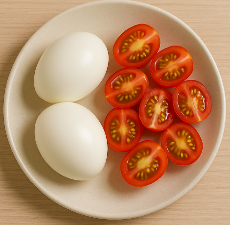 | 간식 | 삶은 달걀 + 방울토마토 | 삶은 달걀과 방울토마토를 함께 먹어요. | ![]() |