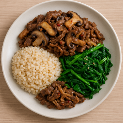 | 점심 | 현미밥 + 버섯불고기 + 시금치나물 |