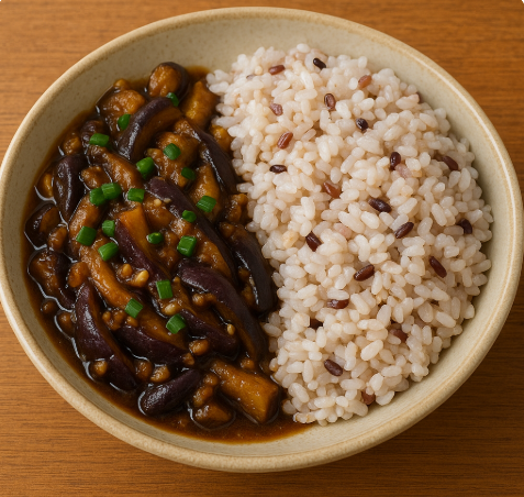 가지볶음: 가지를 길게 썰어 간장과 마늘로 볶아요. 잡곡밥: 여러 잡곡을 섞어 밥을 짓습니다. |