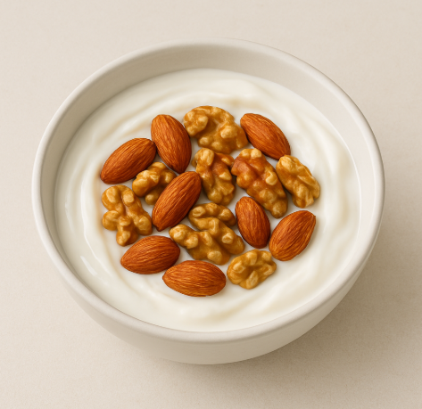 플레인 요거트에 아몬드와 호두를 섞어 먹어요. | ![]() |